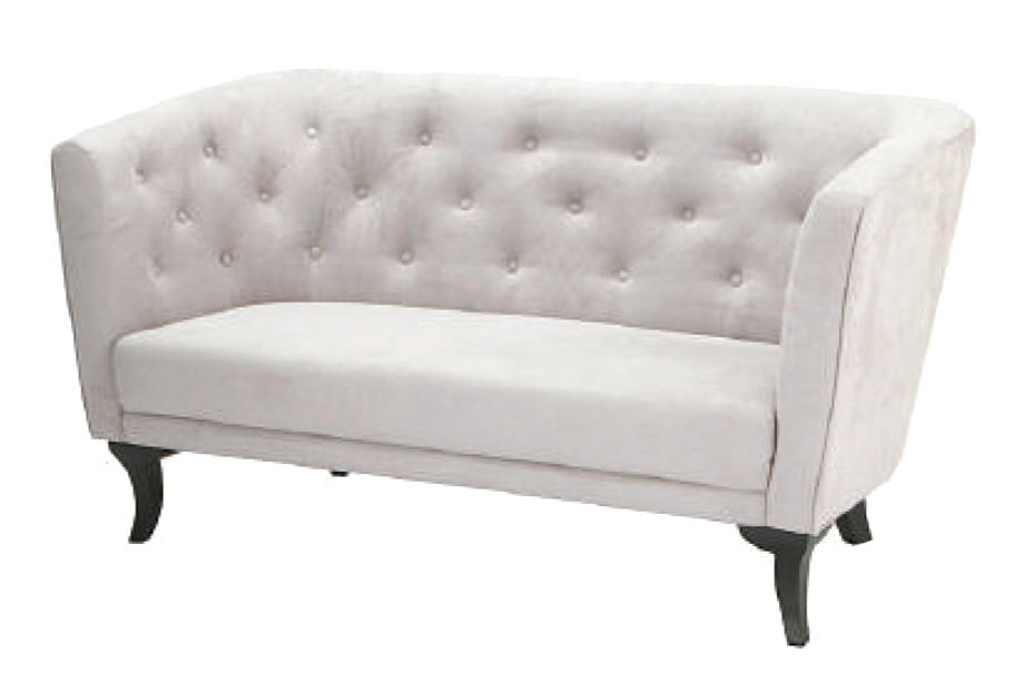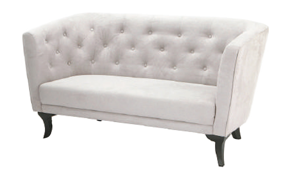 ボタン締めされた背もたれがクラシカルなエレガントソファ。この高い背もたれが座り心地を高めてくれると同時に、デザインのワンポイントにもなっています。猫足調のくるっと曲がった脚が、さらに上品さを演出しています。こんなソファが部屋にあったら気分が上がること間違いありません。